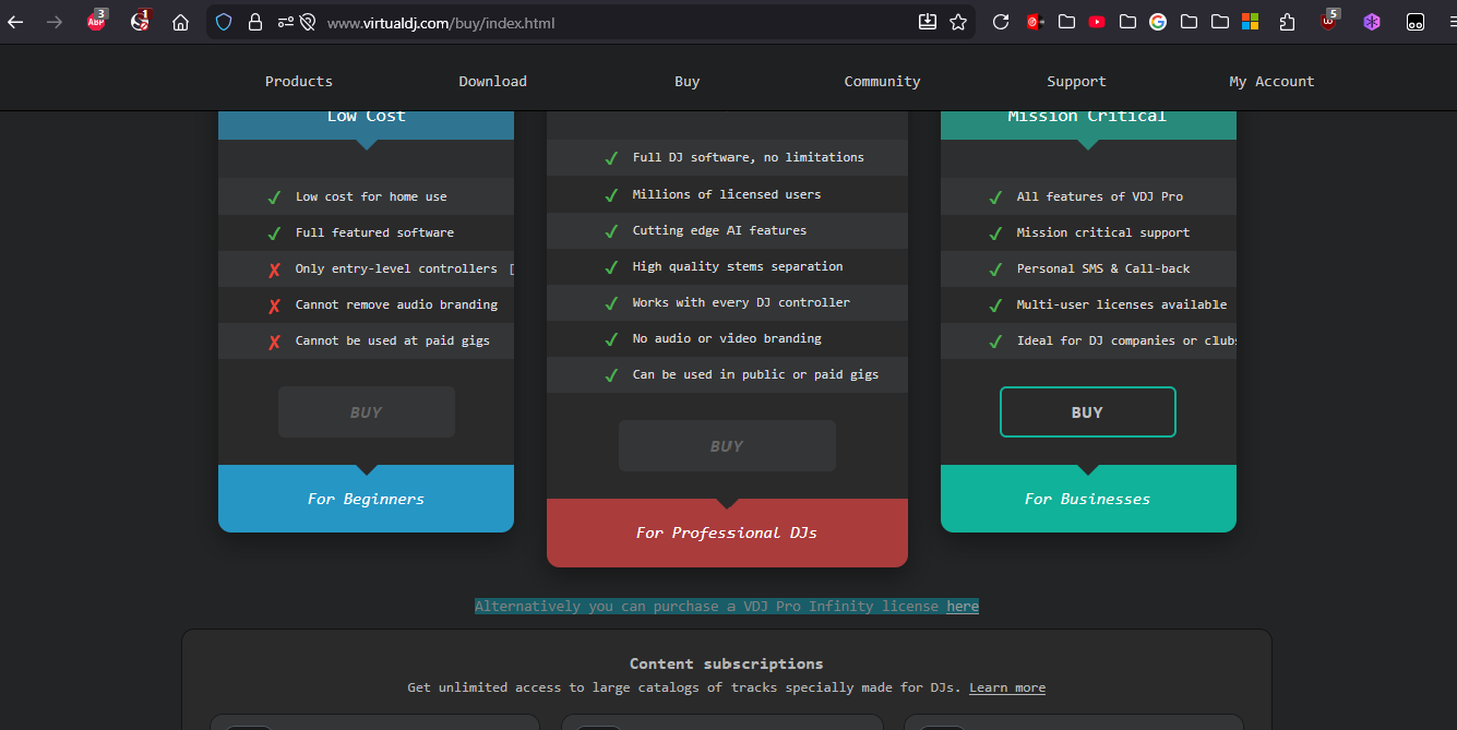 One can purchase the VIRTUALDJ PRO INFINITY Lifetime license, One-time purchase for $299 anytime..