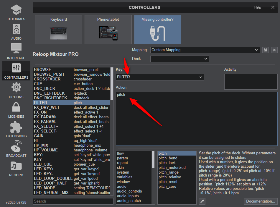 Vorrei modificare la mappa, consentendo alla manopola di filtri alto/basso, mettendola come controllo pitch
