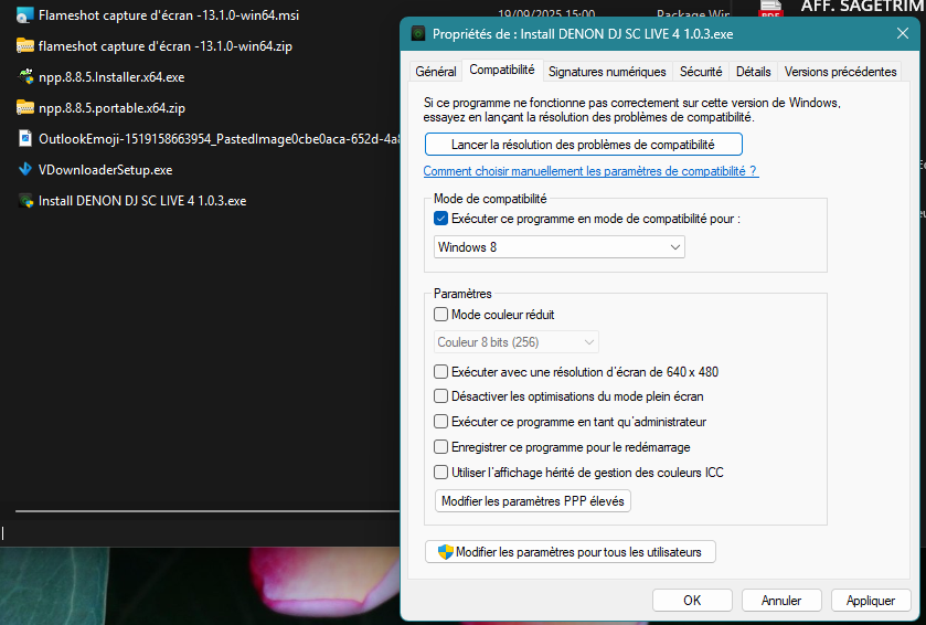 et coche exécuté ce programme en mode de compatibilité pour Win 8 ou Win7