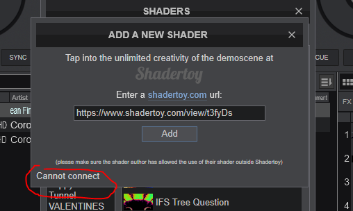 I have the same problem with Shadertoy : "cannot connect" and it is very problematic as can no longer download new shaders to illustrate the mixes.