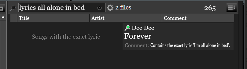 this has been a prime niggle of computer djing.. your customer comes over to request a song but they give you a part of the lyrics and not the correct title..