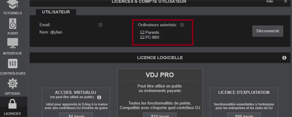 Vous pouvez maintenant savoir sur combien de Pc la licence de VirtualDJ est activé en allant dans paramètre puis licences :