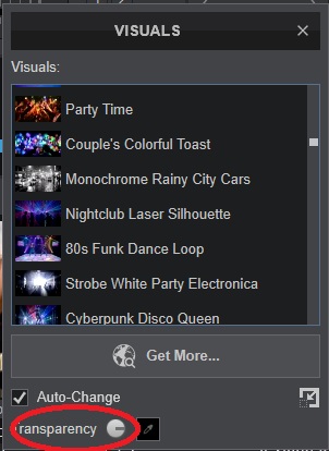 I am trying to map the "Transparency" dial in that "Visuals" menu to a knob on an external controller. Tried the tooltips but cannot find its ID to map it. Anyone can help ?