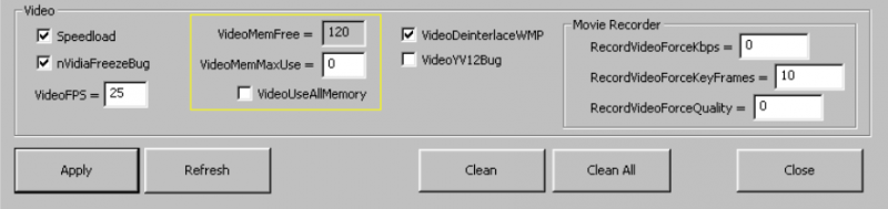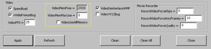 Bei VideoMemMaxUse steht immer noch = 0, hier wird nun der halbe Wert von VideoMemFree eingetragen.