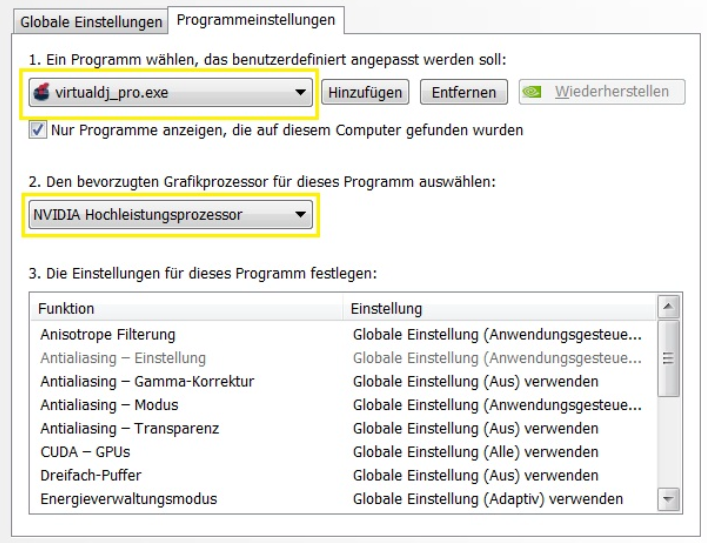 Nutzt man allerdings jetzt in VDJ Videos, versteht Windows das ganze leider nicht und schaltet auch nicht um auf die stärkere Grafikkarte.