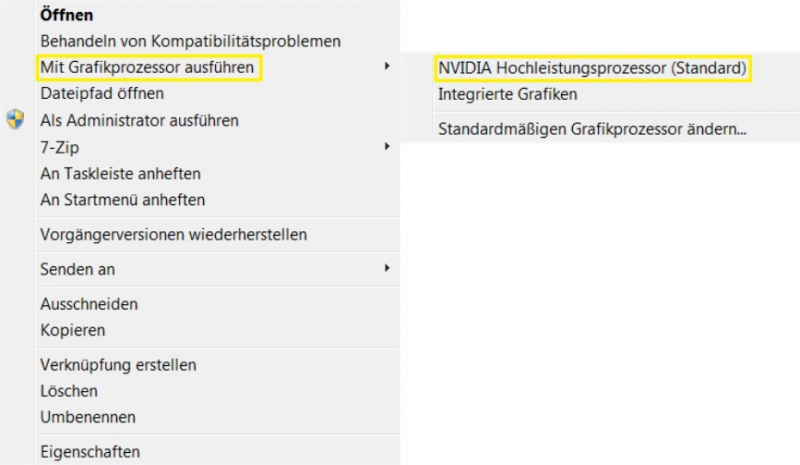 In unserem Beispiel wäre das dann die NVidia Grafikkarte.
