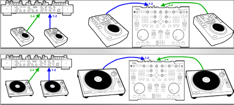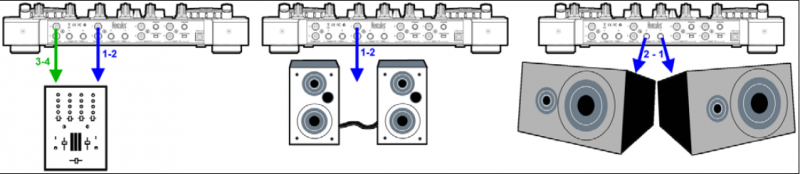 sorties 1/2, et le son joué sur le Deck B vers les sorties 3/4, ce qui vous permet de mixer via un