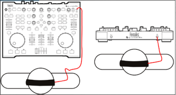 La DJ Console Rmx se connecte à un PC ou un Mac via le port USB. Le bus USB doit être alimenté. Si le DJ souhaite brancher la DJ Console Rmx à un bus USB faible puissance, il est nécessaire d'utiliser un hub USB avec adaptateur secteur.