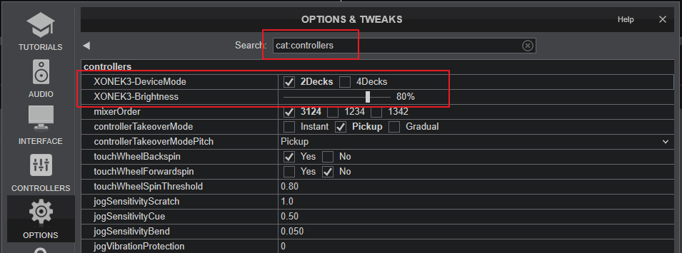 • XONEK3-DeviceMode : Select if your K3 will operate in 2-Decks or in 4-Decks mode.