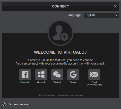 Once VirtualDJ is opened, a Login Window will appear. Login with your virtualdj.com account credentials.