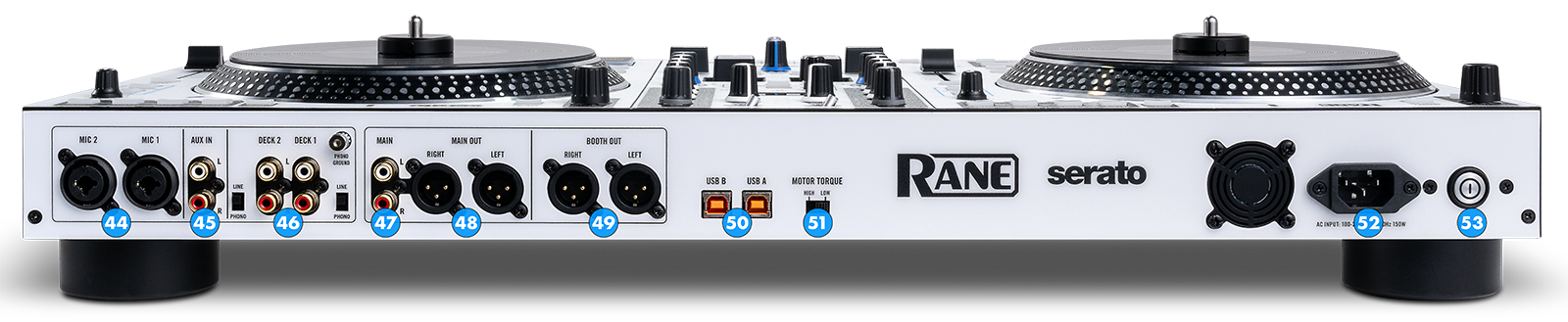 DECK 1/2 INPUTS. Connect your analog gear (like CD Players and Turntables). The audio signal of these devices will be routed on Left/Right channel of the Mixer , when the top SOURCE switchers are at LINE position. You can also use these inputs to connect Timecode devices (for DVS). In this case, the top SOURCE switchers need to be at USB position.