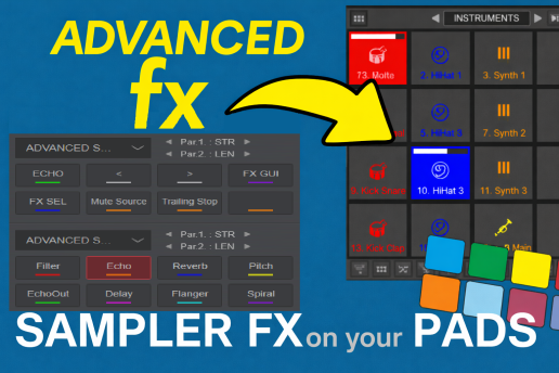 Advanced Sampler FX enhances the default sampler FX workflow by saving each effect’s ON/OFF state, so effects stay active in the background when switching between them. You can freely change FX and return to them without losing their status. It adds +8 de