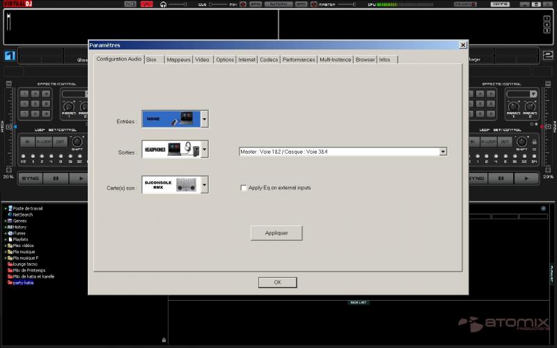 A ma grande surprise, aprés avoir instaler c'est petit merveille sur mon PC fixe, avec virtual DJ 6.0.1, aprés avoir tenter tout les réglages possible dans la config, impossible d'utiliser les prise casque de ma ta RMX... :-(