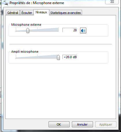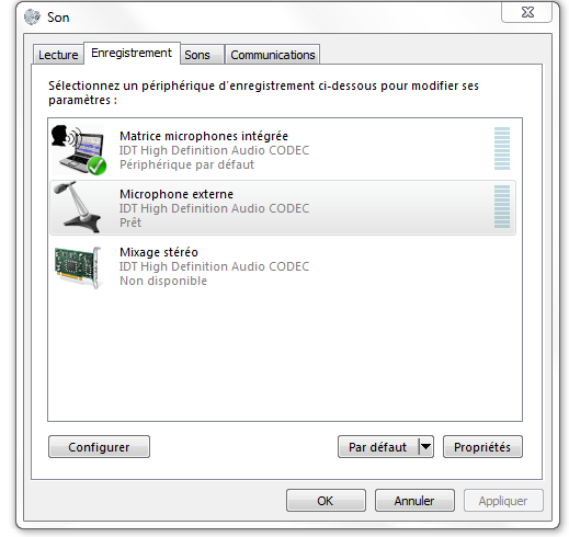 ensuite de là je selectionne microphone externe et ensuite propriété