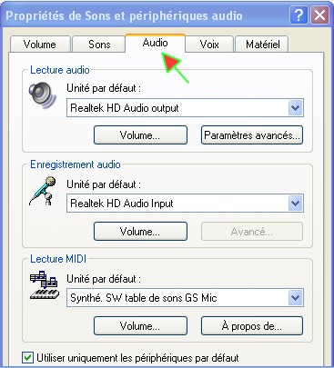 quand je suis dans Propriétés de son et périphérique voici le tableau qui s'affiche!