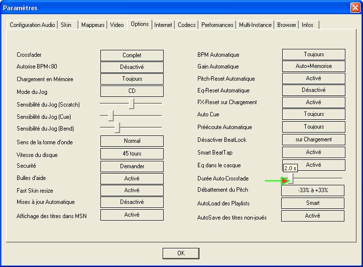 Allez dans l'onglet Option de VDJ et vous allez voir le slider durée Auto-crossfade