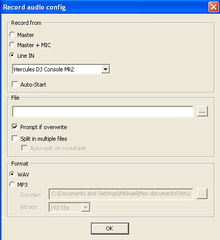 Salut, regarde dans record -> config si tu est en wav ou en mp3 :