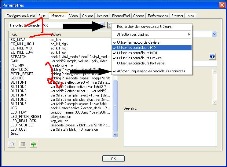 dans l\'onglet mapper il faut faire un clique droit sur le rectangle juste a droite du non de ton controleur(1)