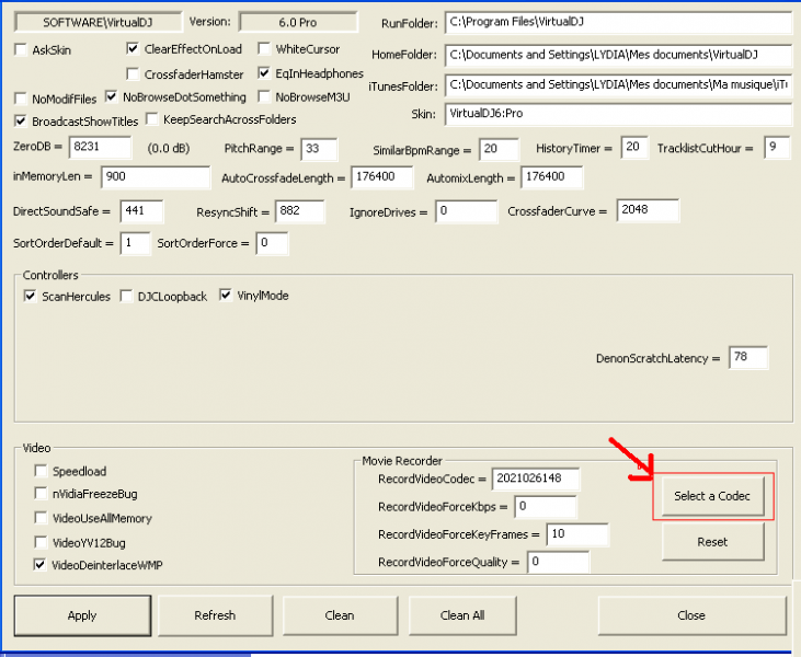 télécharge le registy tool de djcel installe et essai de changer les codecs dans la partie movie recorder