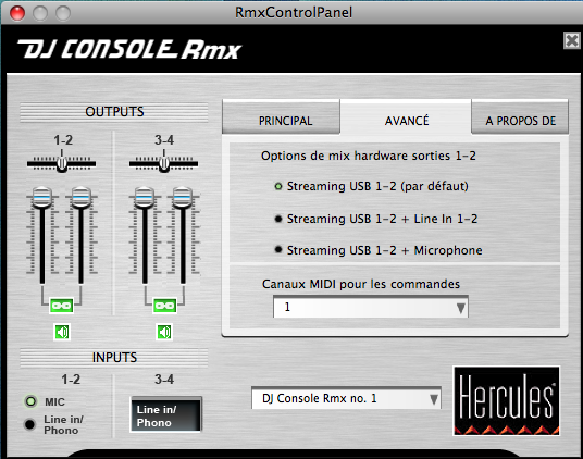 Je veux brancher 2 lecteurs cd, alors sur la hercule je branche sur 1-2 le premier lecteur cd et le deuxièmes sur 3-4.