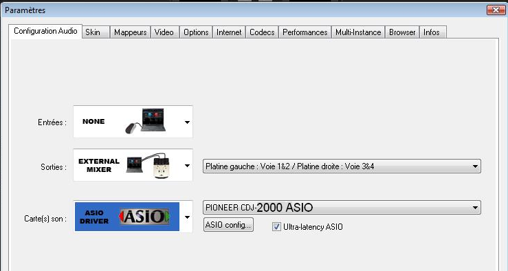 Bonjour à tous et voui me revoilou de passage sur le fofo,et après avoir fait le tour des sujets concernant les cdj 2000 je n'ai pas trouvé la solution à mon problème.Alors voilà le mix via rekordbox fonctionne super j'ai voulu passer au mix avec vdj 6 sur mes 2000 et bien super aussi sauf que le son est trés bon sur la platine gauche mais saturé et vraiment innaudible sur la platine droite,j'ai bien selectionner dans le mappeur cdj 2000 et dans la config audio le mixage et les 2 cartes sons pioneer,avez vous un paramétrage spécial qu'il faudrait faire et sur lequel j'aurais sauter une étape les amis??? ma config est trés simple et basic windows xp labtop uniquement dédier au mix dessus il y à virtual dj et rekordbox, les sons sont gérer sur un dd externe,j'attend vos réponses et solutions à mon problème,merci d'avance à tous