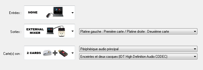 Merci pour l'aide,j'ai paramétrer comme indique gribouillon dans son shema au départ il à bien defini ma config et refait comme tu m'a indiquer jérôme impecable le son est bon sur les 2 voies merci beaucoup sauf que maintenant je sais je suis ch.... j'ai le chargement des mp3 trés lent je dirait même hyper lent le titre ne peu pas se mixer car il y à un blanc comme le chargement ne se fait pas à fond,il est à charge max 15 mn dans les parmétrages audio,de quoi cela vient donc docteur est ce grave ?? la mise à jour et le fireware sont à jour dernière version