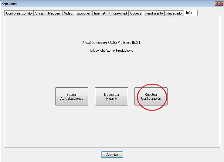 Resetea tu configuración a la de default en opciones de VDJ.