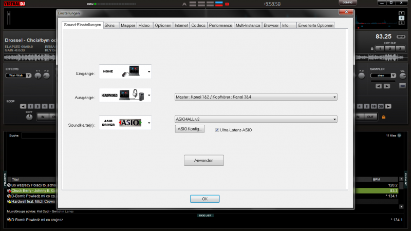 Mhm. Dann mach mal den Haken bei Ultra-Latenz-ASIO raus.