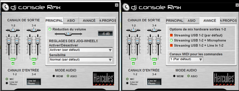 2 : mettre comme indique Julien mais sans oublier de mettre aussi sur WDM dans le driver de la Hercules (voir image) !