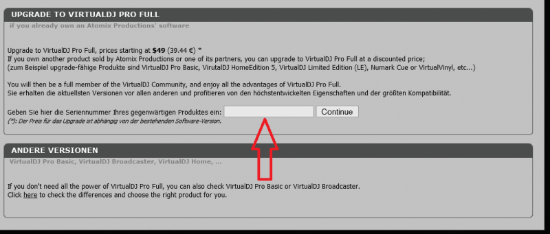 Die Nr. die Du da findest, musst Du hier zum Upgrade eingeben: