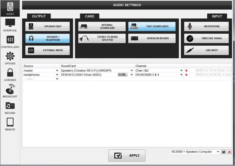 Thanks groovindj, for the MC6000 I selected Asio driver for both master and headphones. Thanks for the tip!
