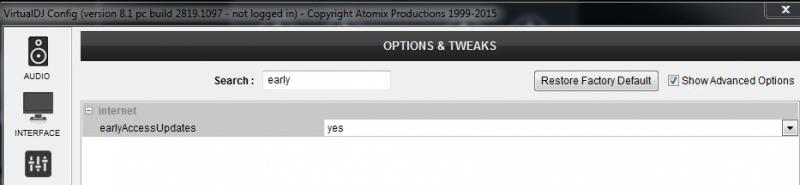 Open VirtualDj config, go on preferences and search for the "earlyAccessUpdates" option. Make sure it's set to "no" and you should only get public builds.