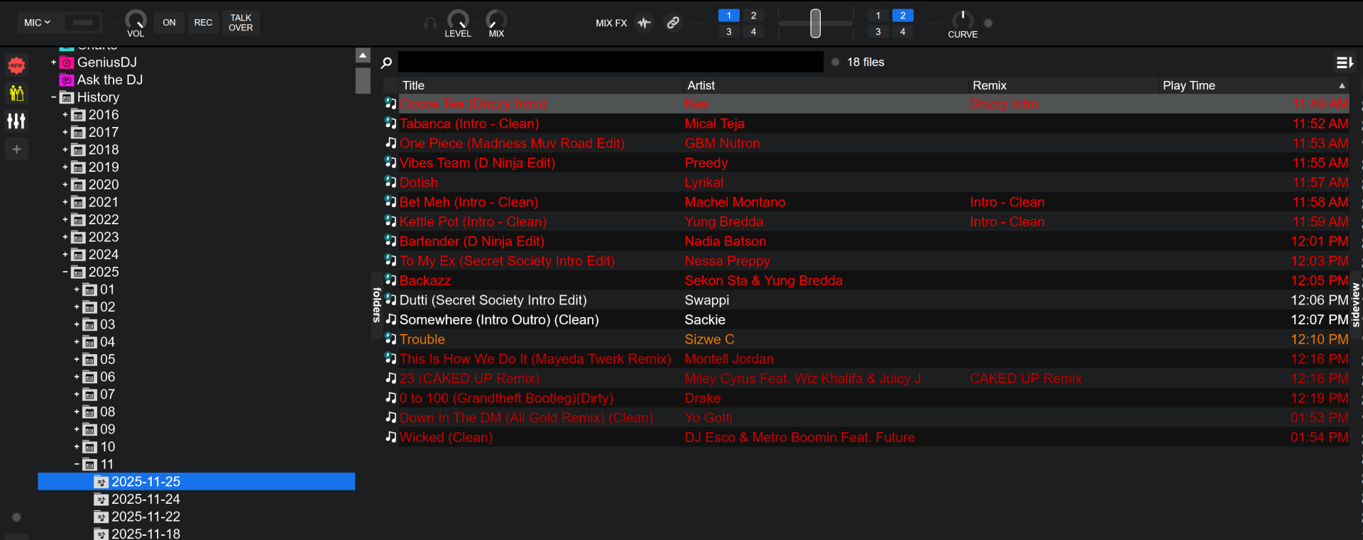 Since November 25th, my History has not recorded my playlist for each event. I'm not sure why. I've uninstalled and installed the software. I've ensured that my information points to C:\Users\night\AppData\Local\VirtualDJ, not D:\DJ_KNIGHTRIN\Documents\VirtualDJ.