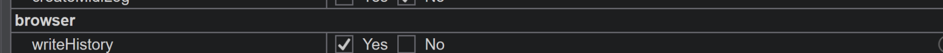 Check on settings if "writeHistory" setting is enabled or not