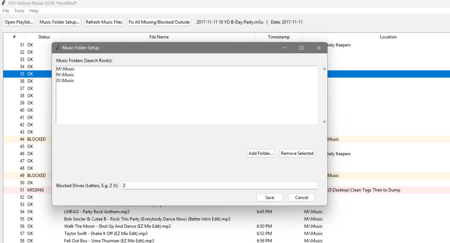 Only using Save As / Save New function so original history playlist stay intact. Has been working good for me so figured I'd see if there was any interest.
