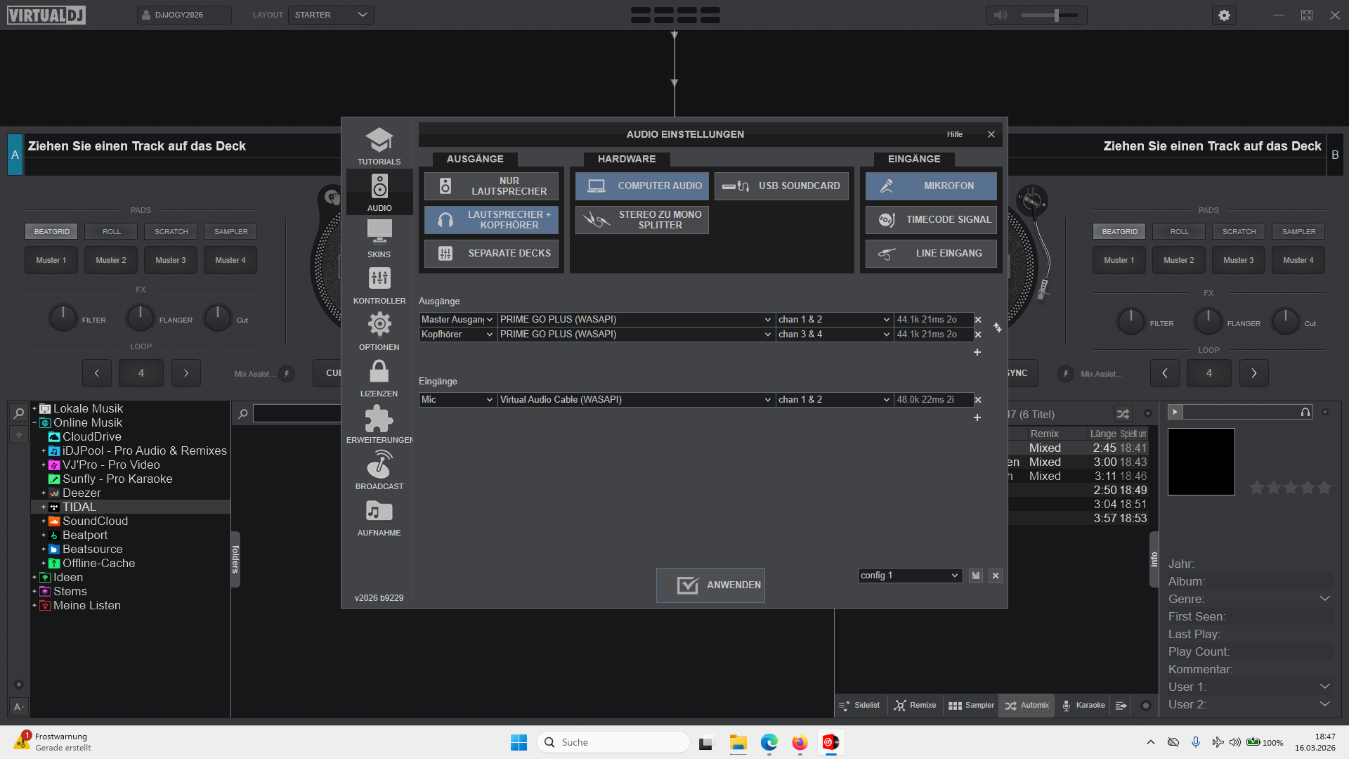 mach mal bitte einen Screenshot von deiner Audio Konfiguration in VDJ sowie eines deiner Windows Update Histrory.