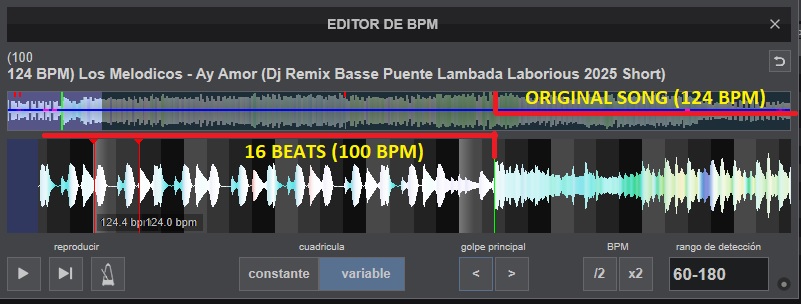 I've tried several options in the settings, but the red anchor points when analyzing the song always show 124 BPM, which is the song's original speed, and it doesn't detect it during the first few beats I need.